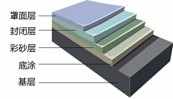 05.将彩砂层材料混合均匀,使用铺砂器摊铺,然后使用抹平机收光;