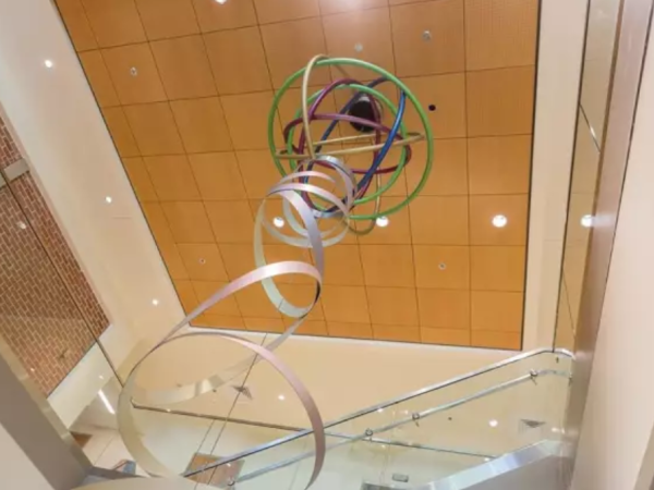 天井上缓缓垂下的金属吊顶,将整个空间牵在一起,让地面的精彩并不孤独,没错,一个令人赞叹的视觉盛宴!